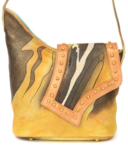 ZIMBELMANN Shoulder Bag - Sandra - Genuine Nappa Leather 11.4 x 7.9 x 3.9 in multicolored hand-painted Handbag Cross-Body Bag Flap Bag Purse Evening Bag ZIMBELMANN Bags and Accessories: exceptional design meets outstanding craftsmanship and excellent material quality! Each one of our items was hand-painted by our experienced artists. Distinct and individually matched motives turn every ZIMBELMANN product into an original piece. Become acquainted with the unparalleled charm of our elaborately manufactured goods. ZIMBELMANN is more than just a bag! With the delicate shape Sandra appears playful yet elegant. Rich golden yellow and warm brown and copper tones are the dominant colors. The exotic design invites you to dream. An exceptional bag for an exceptional woman - ZIMBELMANN! Features: - zipped main compartment - inside pockets for purse and mobile phone - zipped pocket inside of main compartment - zipped pocket on the backside - inner fabric with brown and copper colored stripes - metal feet - dimensions: 11.4 x 7.9 x 3.9 in Highlights: - exquisite nappa leather - vivid colors - hand-painted by experienced artists - extraordinary shape - every bag is unique The colors do not rub off and they are resistant to the exposure to weather conditions. With the particular treatment of the leather the colors will remain and the motives will retain their liveliness. Care instructions are enclosed.